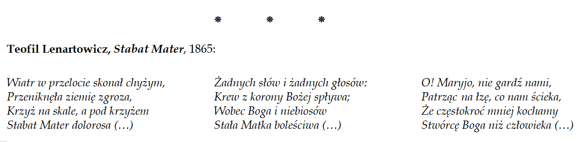 A działo się to w chwili, w której Szatan tryumfował i zdawać by się mogło, że odtąd Książę Ciemności będzie niepodzielnie rządził światem. Tymczasem, zgodnie z wolą Bożą, był to próg Zbawienia, czego człowiek nie umiał objąć swoim rozumem. Czyż i dzisiaj nie jest podobnie? Czyż i dzisiaj światowa rzeczywistość nie sugeruje nam definitywnej przegranej Piękna, Dobra i Prawdy? Nie wierzmy w tę kuszącą nas beznadziejność, która zamyka drogę do Nieba. I nigdy odtąd już nie zapominajmy, że Ta, „która współcierpiała, Matka Bolesna”, zawsze może „przyczynić się za nami”.